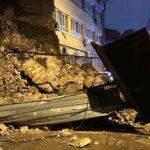 İstanbul Beyoğlu’nda taştan inşa edilmiş tarihi metruk binanın duvarı yıkıldı. Olayda herhangi bir ölüm ya da yaralanma meydana gelmezken, anlar güvenlik kamerasına anbean kaydedildi.