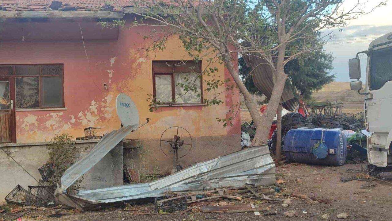 Ankara’nın Beypazarı ilçesinde, şiddetli bir fırtına ile birlikte ortaya çıkan olumsuz hava koşulları, evlerin çatılarında ciddi hasarlara yol açtı.