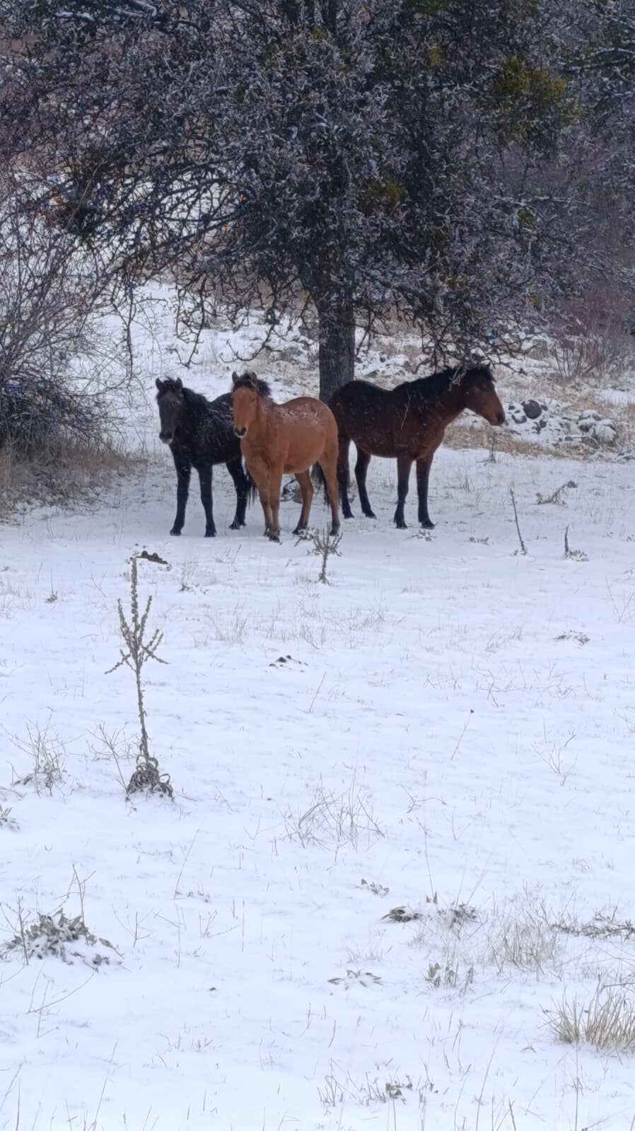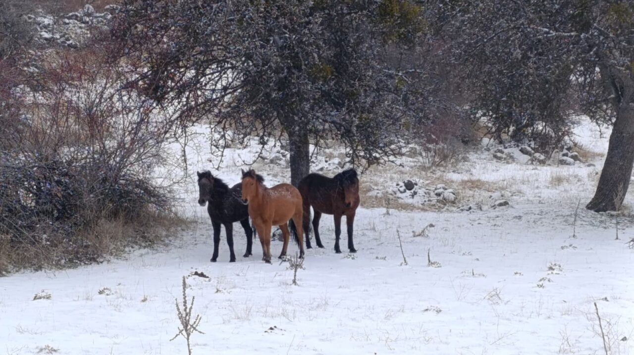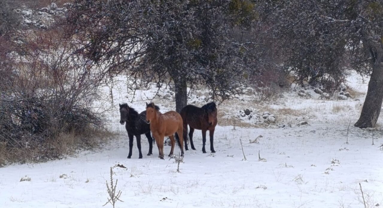 Ankara’nın Beypazarı ilçesinde karla kaplı yılkı atları kartpostallık manzaralar oluşturdu.