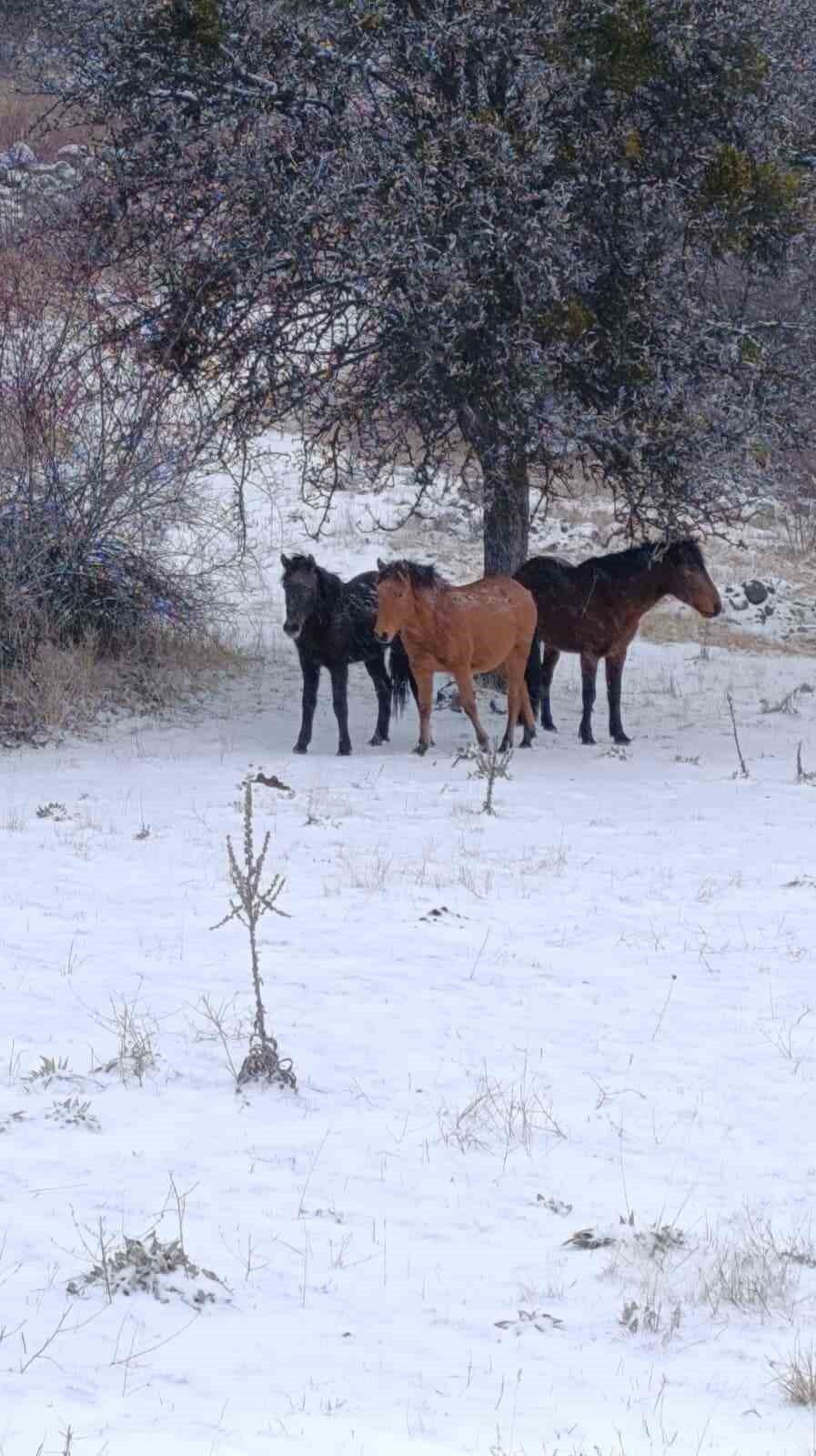 Beypazarı’nda karla kaplı yaban atları muhteşem manzaralar sundu.