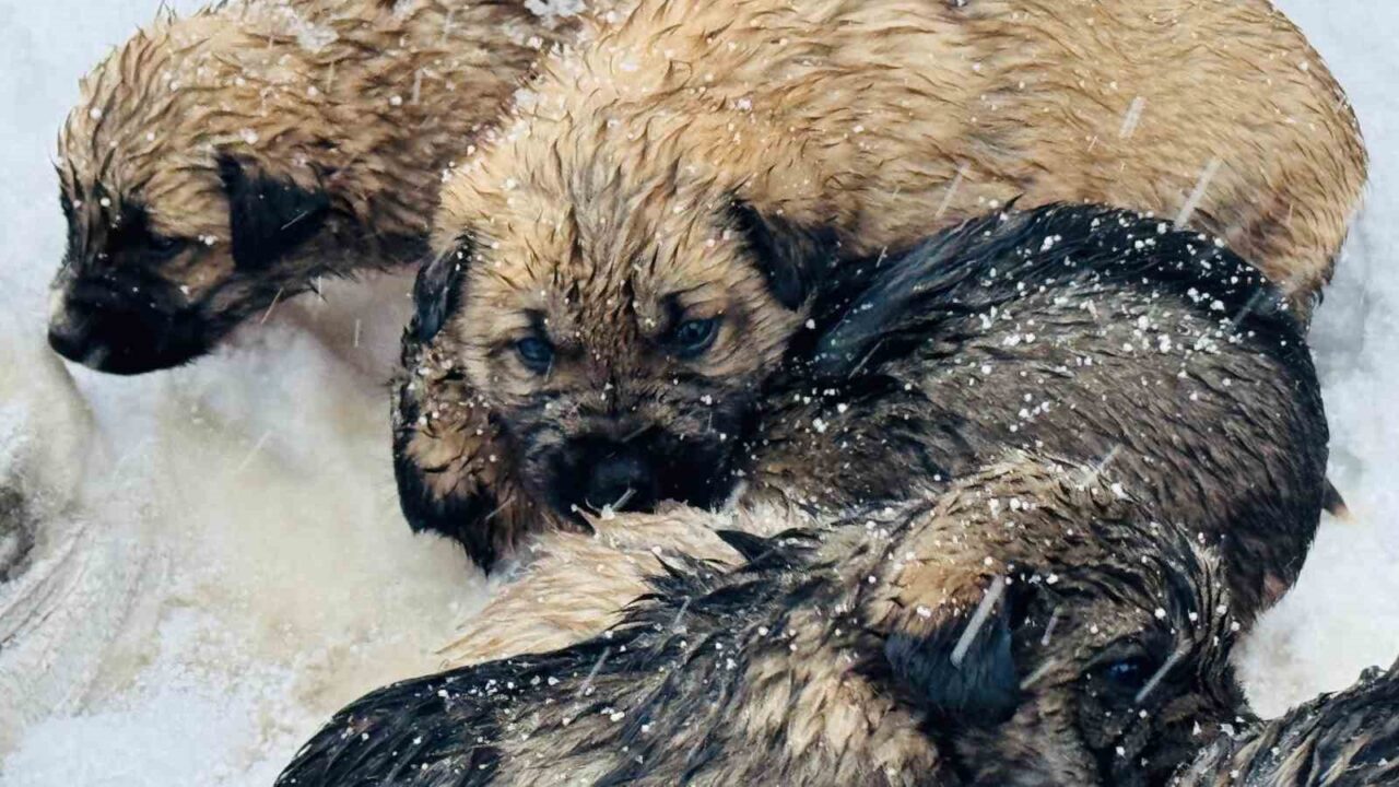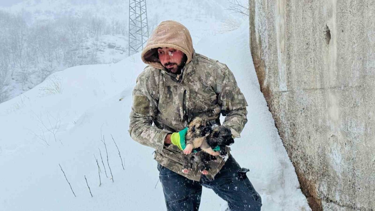 Şırnak’ın Beytüşşebap ilçesinde donmak üzere olan 12 köpek yavrusu son anda kurtarıldı.