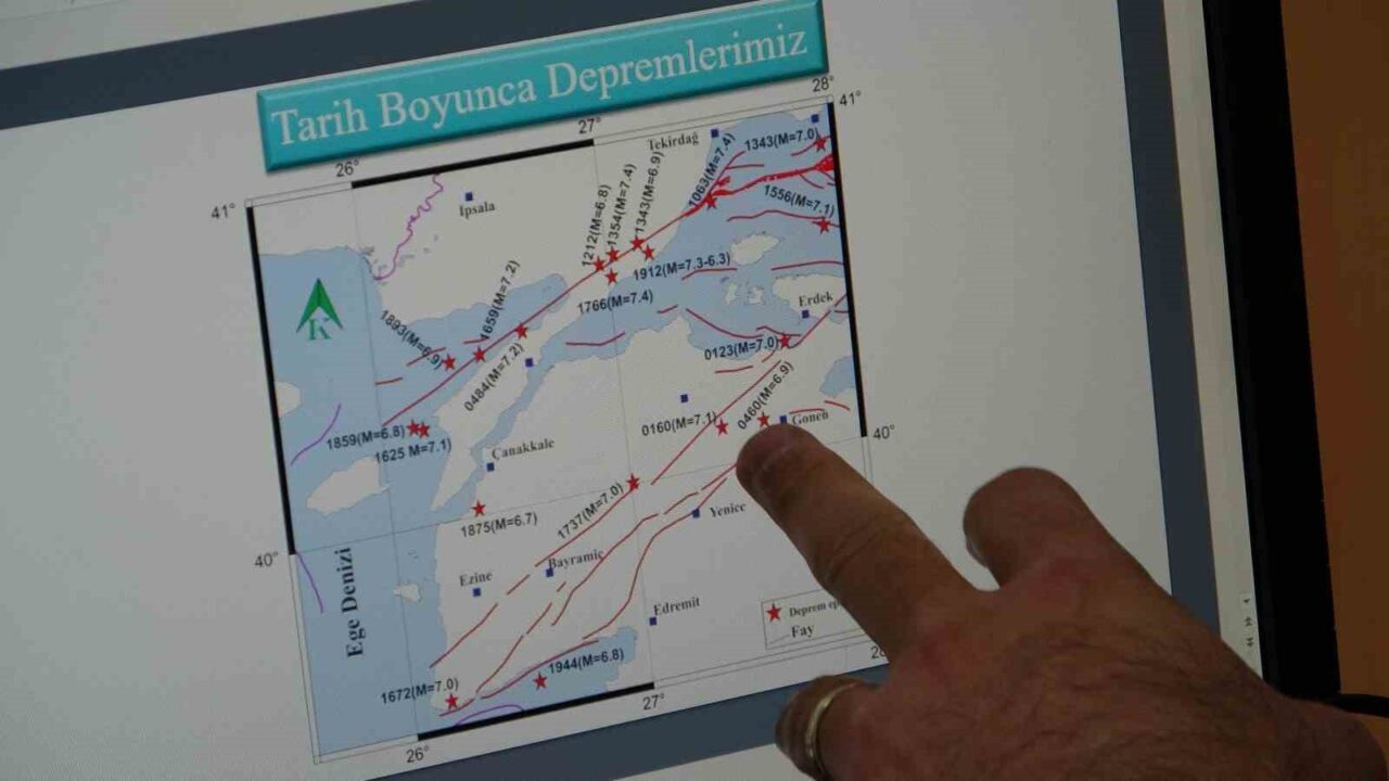 Biga’da çeşitli fay hatlarının bulunduğunu ve bunların tarihte yıkıcı depremler meydana getirdiğini aktaran Bekler, “Biga özelinde konuşursak, Biga gerçekten Anadolu’nun önemli tektonik unsurlarını barındıran ve geçmişte bu unsurların zararlı etkilerini, yıkıcı etkilerini bizlere gösteren bir bölgedir. 1912 Saros Körfezi Depremi, 1953 Yenice Gönen Depremi, 1944 Edremit Körfezi Depremi gibi önemli depremlerimiz Biga Yarımadası’nda meydana gelmiştir. Son olarak 2017’de Ayvacık’ta meydana gelen deprem 5.4 büyüklüğünde. 2019’da da 5.3 büyüklüğünde Ahmetçe’de gerçekleşen bir deprem oldu. Günümüze kadar olan süreç içerisinde 2024, 2022, 2025 yıllarında 4’ün üzerinde belirli büyüklükte meydana gelen depremler bulunmaktadır” ifadelerini kullandı.
