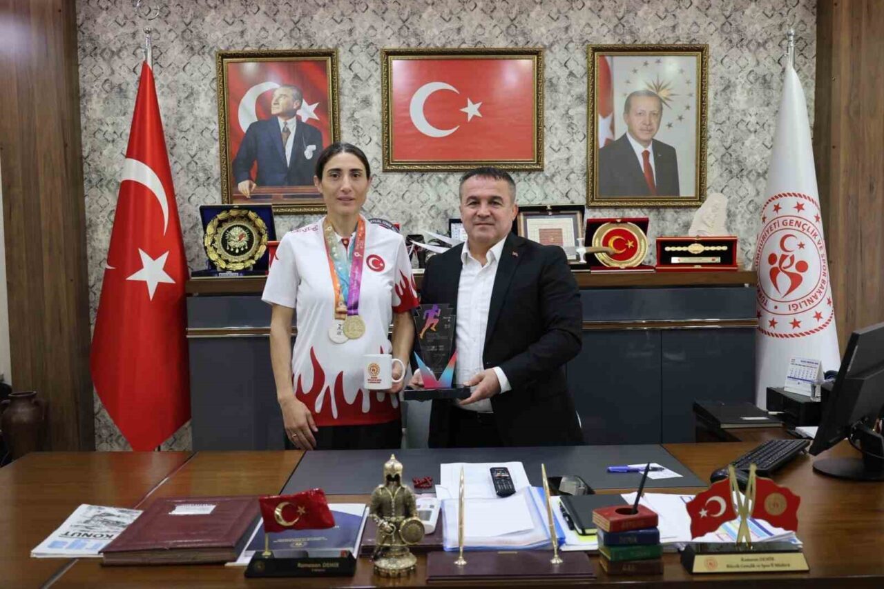 Başarılı atlet, kazandığı bu değerli başarı sonrası, antrenörü Medeni Demir ile birlikte Bilecik Gençlik ve Spor İl Müdürü Ramazan Demir’i makamında ziyaret etti. İl Müdürü Demir, ziyarette sporcu ve antrenörüne tebriklerini ileterek, “Sporcumuzun bu önemli başarıyı elde etmesi, hem ilimiz hem ülkemiz adına bir gurur kaynağı. Sebahat’ın başarılarının devamını bekliyoruz” ifadelerine yer verdi.