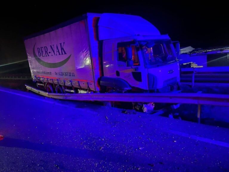 Olay, geç saatlerde Bilecik-Bozüyük-İnegöl karayolu üzerindeki Çaydere Kavşağı’nda gerçekleşti. 16 BR 494 plakalı kamyonun sürücüsü Hakan K., bir anda aracı üzerinde kontrolü kaybetti. Kontrolden çıkan kamyon, orta refüjdeki bariyerlere çarparak durabildi.