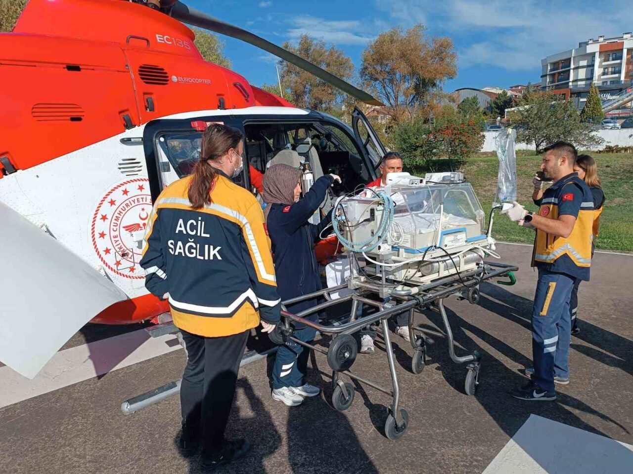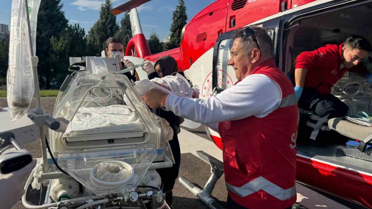 Kerem bebek, bronkopulmoner displazi tanısıyla Ankara’daki hastanenin Yenidoğan Yoğun Bakım Ünitesi’nde takip edilmekteydi. İlerleyen tedavi süreci için Sağlık Bakanlığı’na bağlı hava ambulansı helikopter kullanılarak Karabük’e sevk edildi.
