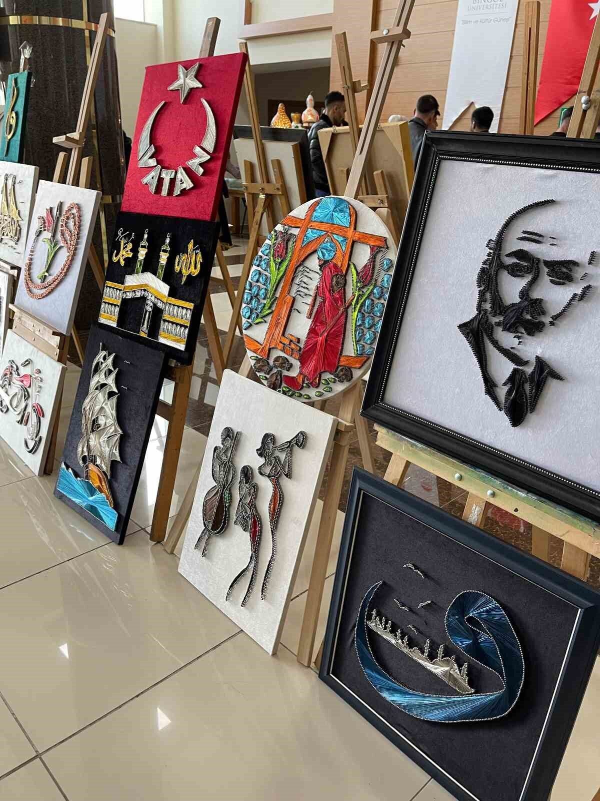 Bingöl Gençlik Merkezi’nin ev sahipliği yaptığı etkinlikte, gençler tarafından üretilen birbirinden farklı el emeği eserler, Bingöl Üniversitesi’ndeki Recep Tayyip Erdoğan Kongre Merkezi’nde, iki gün boyunca sergilendi. Öğrencilerin katıldığı atölye çalışmaları sonucunda, ahşap yakma, su kabuğu, maket yapımı, ahşap rölyef, ahşap yontma, ahşap şekillendirme, alçı kalıp, geri dönüşüm, resim ve filografi gibi pek çok farklı alanda üretilen ürünler, ziyaretçilerle buluştu.