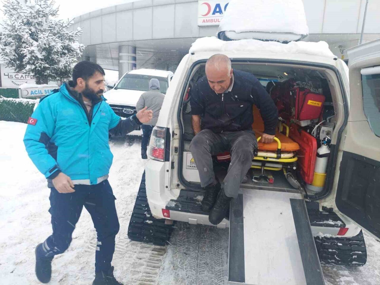 Kent genelinde süregelen kar yağışı ve olumsuz hava koşulları nedeniyle bazı bölgelerde ulaşım güçlükle sağlanırken, UMKE ekipleri paletli ambulanslarla kapanan yolları aşarak hastalara ulaşıyor. Ekipler, olay yerinde gerekli ilk tıbbi müdahaleleri gerçekleştirerek hastaların güvenli bir şekilde hastanelere sevk edilmesini sağlıyor.