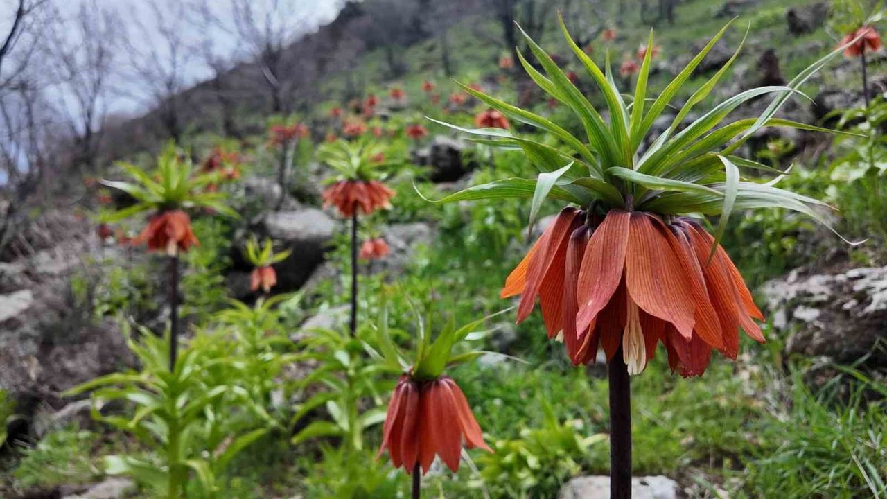 Bingöl'ün yüksek rakımlı dağlarında baharın gelişini müjdeleyen ters laleler, doğaseverlere eşsiz manzaralar sunuyor. Halk arasında ‘ağlayan gelin' ve ‘hüzün çiçeği' olarak bilinen bu çiçekler, zarif duruşları ve dikkat çekici görüntüleriyle doğanın en nadide güzellikleri arasında yer alıyor. Kısa ömürlerine rağmen açtıkları alanlarda görsel bir şölen oluşturan laleler, Bingöl merkeze bağlı Gökçeli köyü kırsalında fotoğraflandı.