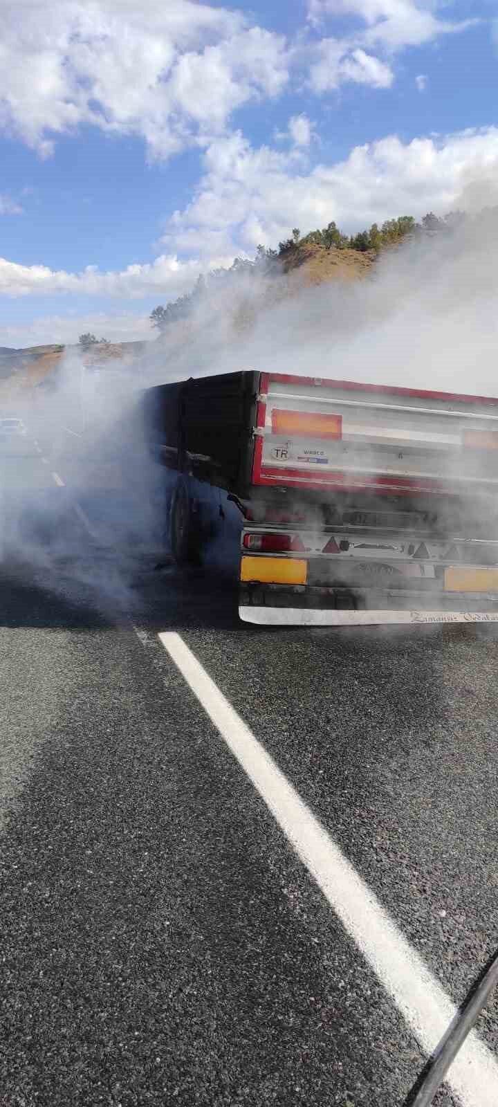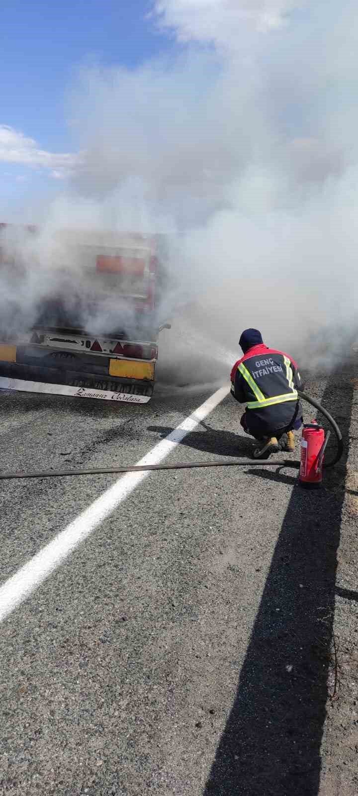 Bingöl-Diyarbakır karayolu üzerinde meydana gelen ilginç bir olayda, seyir halindeki bir tırın dorsesi alev aldı.
