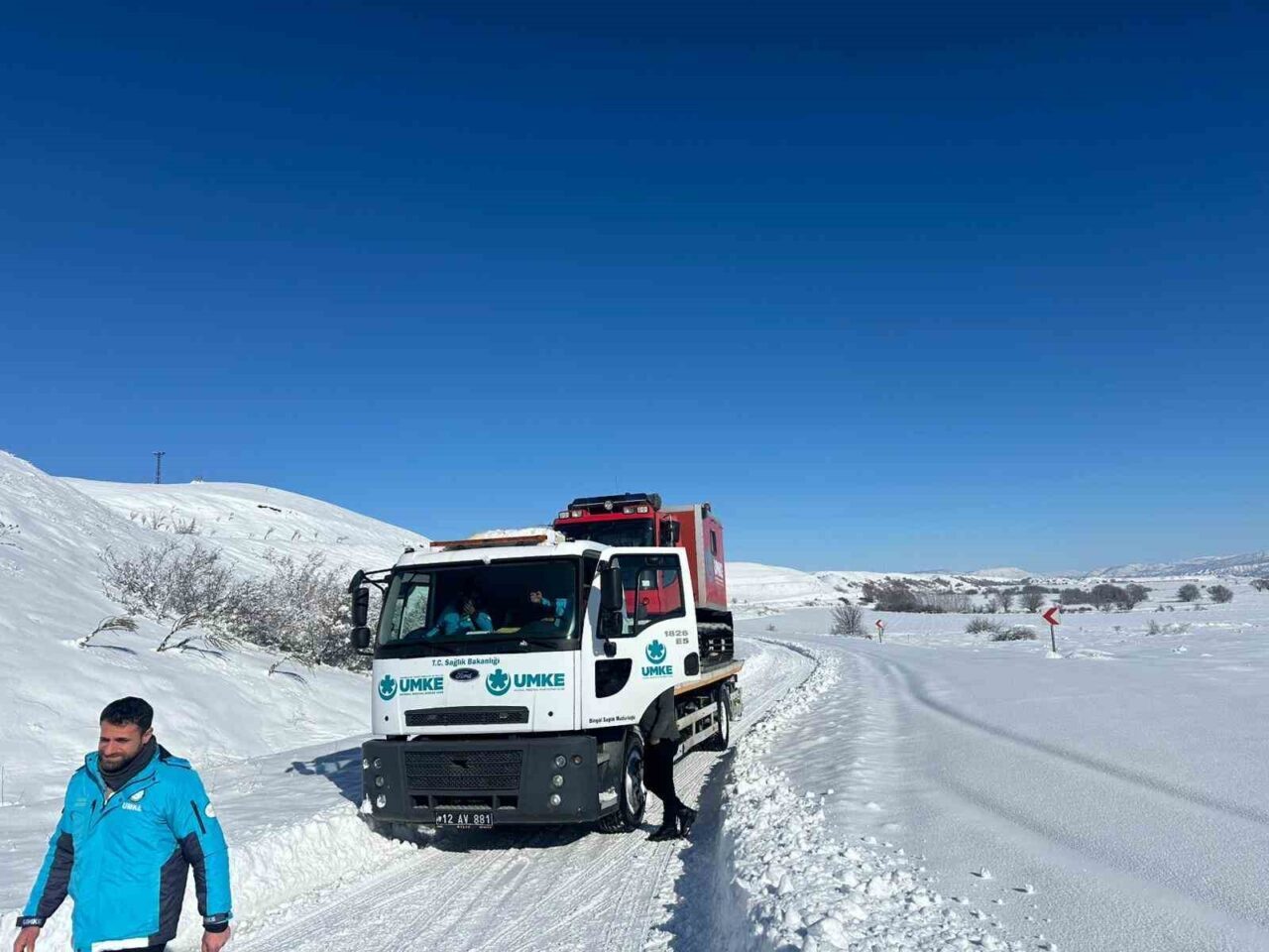 Bingöl’de etkili olan yoğun kar yağışı ve olumsuz hava koşullarına rağmen UMKE ekipleri, sağlık hizmetlerinin devamlılığını sağlamak için özveriyle çalışmalarını sürdürmektedir.
