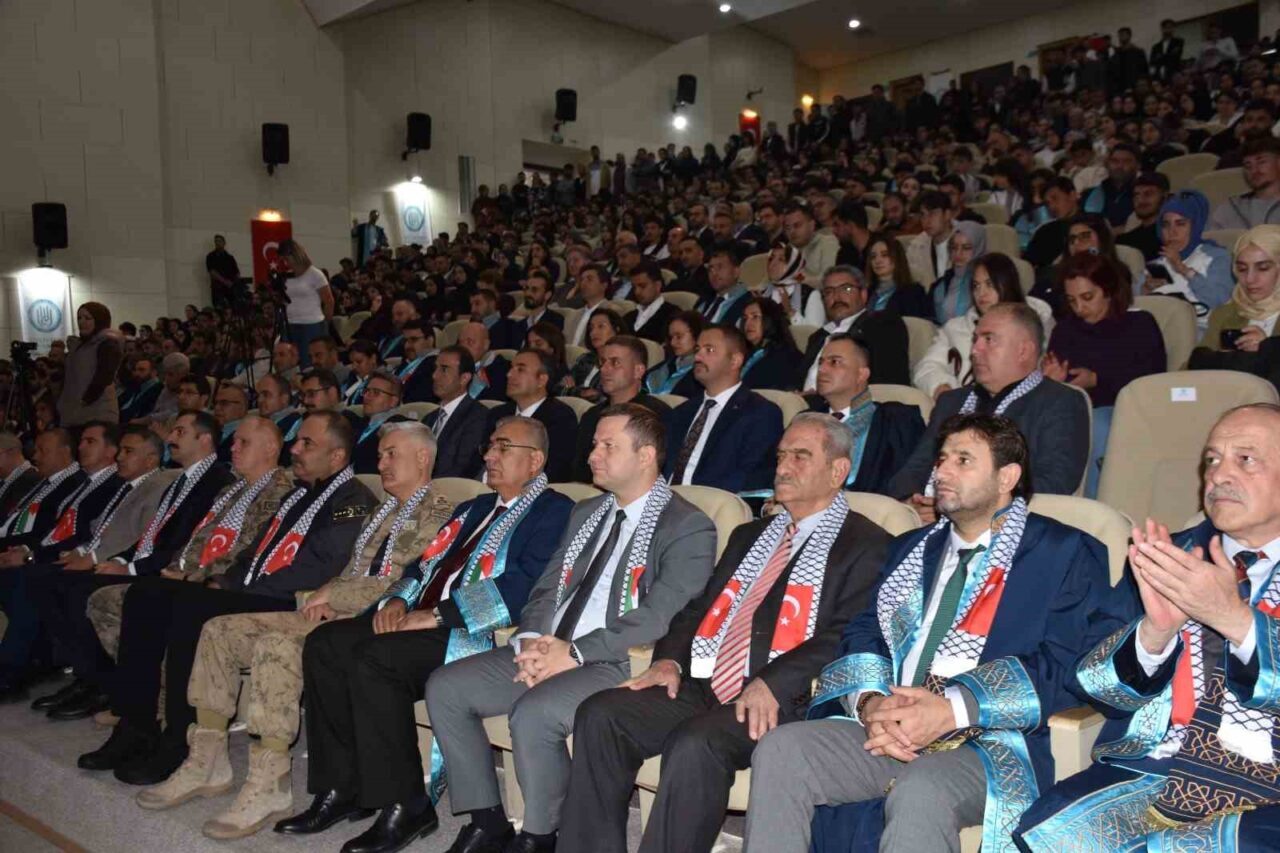 Rektör Prof. Dr. Necmettin Elmastaş, Gazze’deki insani trajediye dikkat çekerek öğrencilerin insani değerler konusunda da duyarlı olmaları gerektiğinin altını çizdi. Elmastaş, YÖK Başkanı Prof. Dr. Erol Özvar’ın tüm üniversitelerde ilk dersin Filistin üzerine işlenmesi yönündeki çağrısına kulak verdiklerini ifade etti. Ayrıca, üniversitenin 8 fakülte, 2 yüksekokul ve 9 meslek yüksekokulunda toplam 15 bin 532 öğrenciye eğitim verdiğini kaydetti. Bu yıl içerisinde yeni akademik birimler açmayı ve mezunlarının istihdamını kolaylaştırmayı planladıklarını aktardı.