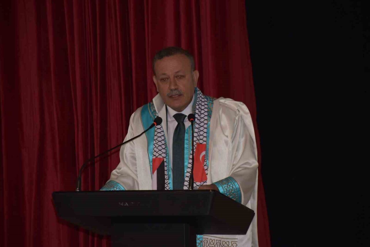 Rektör Prof. Dr. Necmettin Elmastaş, Gazze’deki insani trajediye dikkat çekerek öğrencilerin insani değerler konusunda da duyarlı olmaları gerektiğinin altını çizdi. Elmastaş, YÖK Başkanı Prof. Dr. Erol Özvar’ın tüm üniversitelerde ilk dersin Filistin üzerine işlenmesi yönündeki çağrısına kulak verdiklerini ifade etti. Ayrıca, üniversitenin 8 fakülte, 2 yüksekokul ve 9 meslek yüksekokulunda toplam 15 bin 532 öğrenciye eğitim verdiğini kaydetti. Bu yıl içerisinde yeni akademik birimler açmayı ve mezunlarının istihdamını kolaylaştırmayı planladıklarını aktardı.