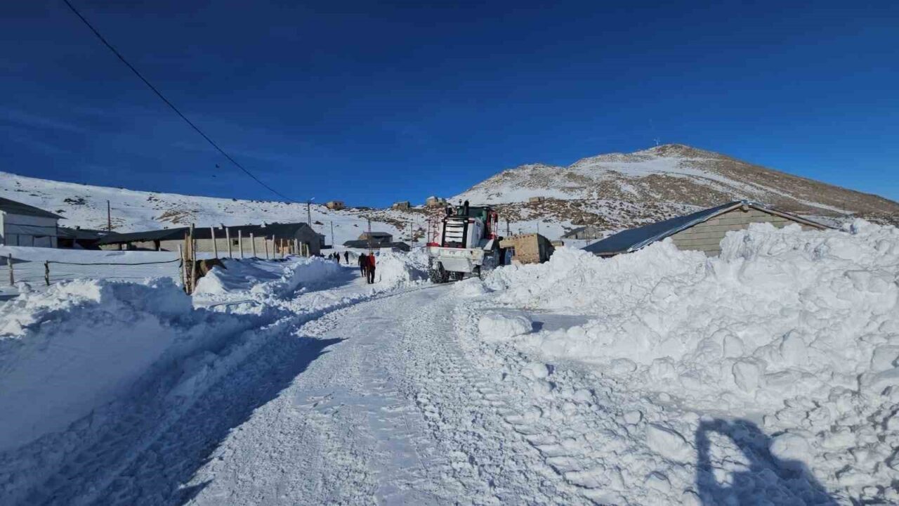 Bitlis’te, Süphan Dağı eteğindeki Aydınlar beldesinde yürütülen karla mücadele çalışmaları sürüyor.
