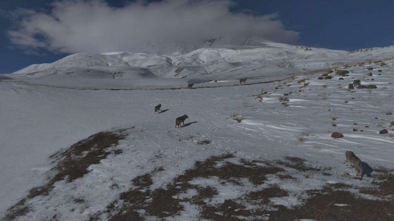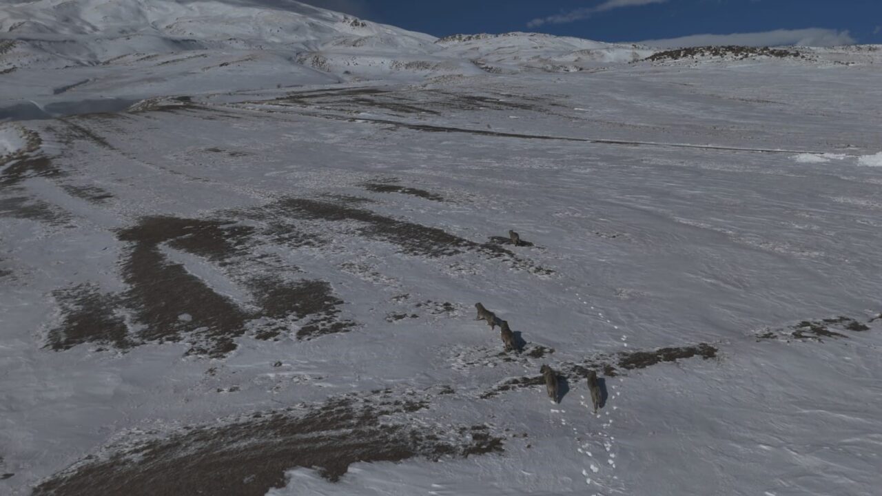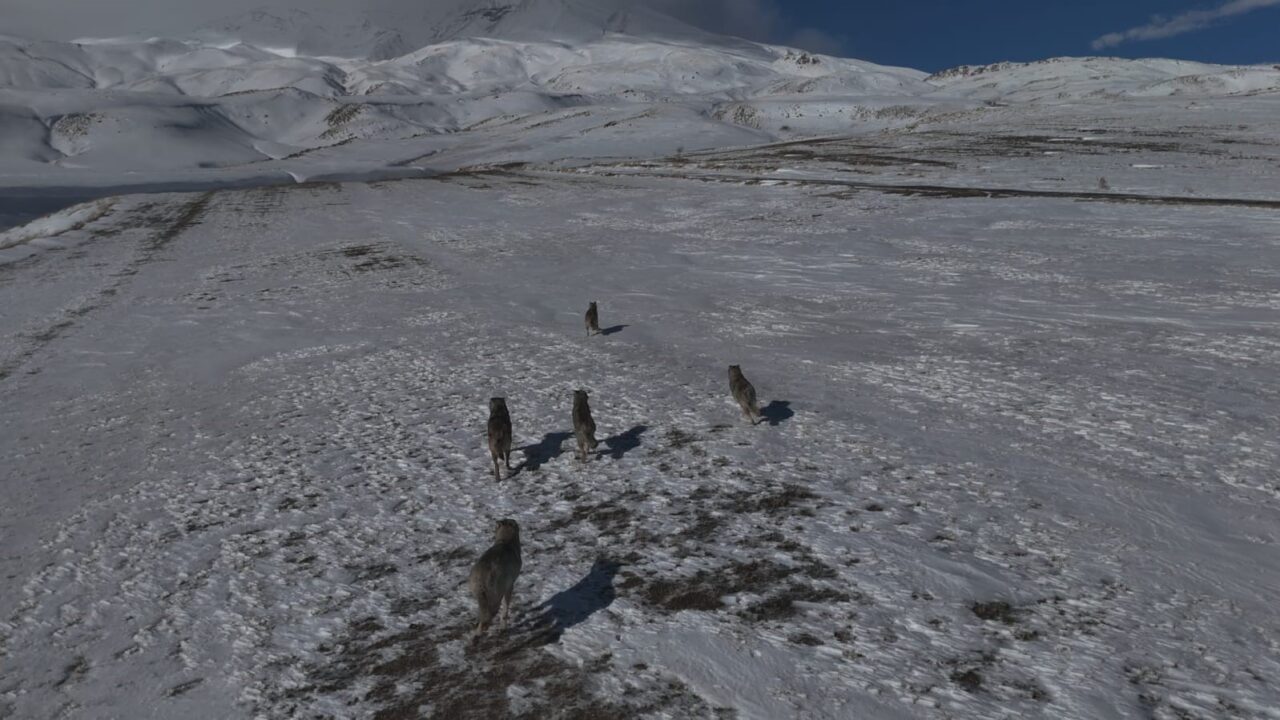 Bitlis’in Adilcevaz ilçesi Aydınlar beldesinde, doğada nadir rastlanan anlardan biri dron kamerasına yansıdı. Kırsal alanda gerçekleştirilen çekimler sırasında bir kurt sürüsünün birlikte hareket ettiği anlar görüntülendi.