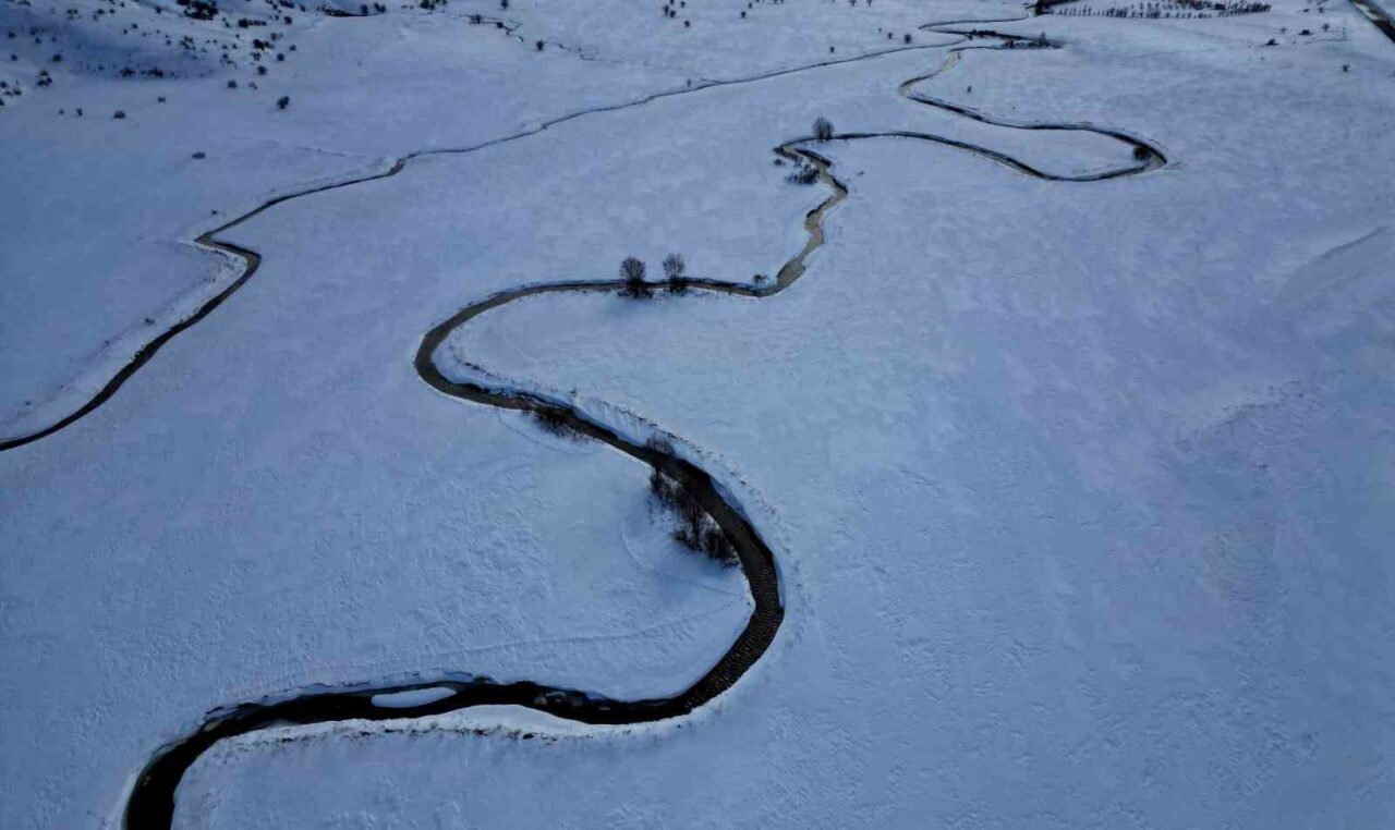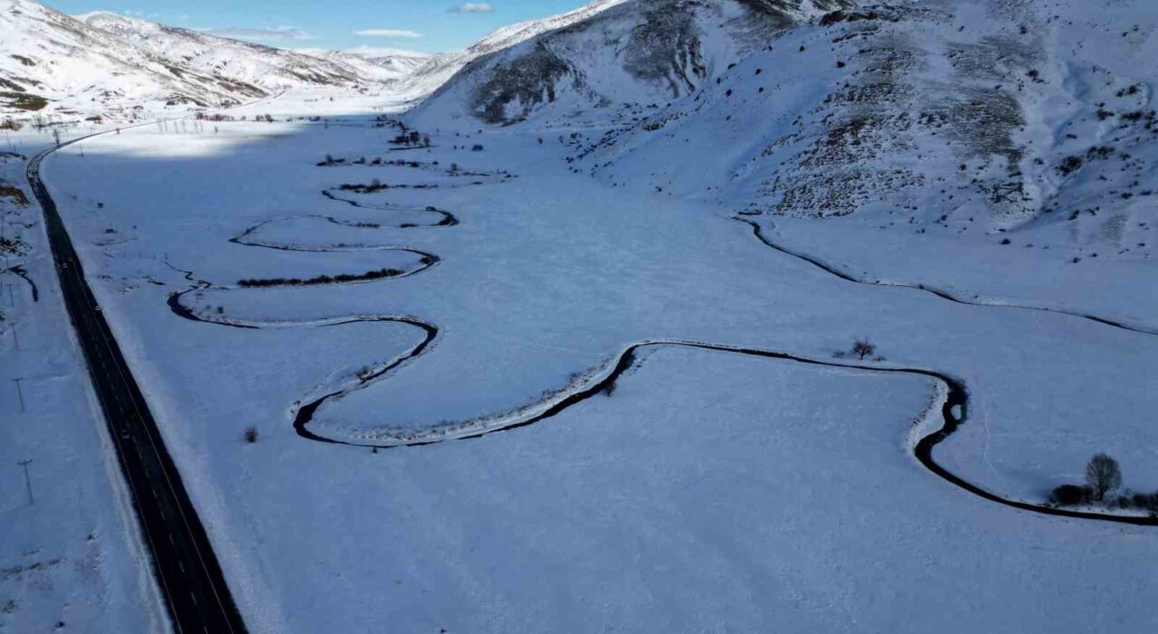 Beyaz örtüyle kaplanan dağlar arasında kıvrıla kıvrıla uzanan menderesler, doğaseverlerin ve sürücülerin ilgisini çekti. Karla kaplanan vadide ortaya çıkan eşsiz görüntüler, bölgenin doğal güzelliklerini bir kez daha gözler önüne serdi.