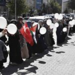 Açıklamanın ardından bir dakikalık sessizliğin ardından kadınlar, alanın ortasına getirdikleri beyaz balonları gökyüzüne bıraktı. Etkinlik, Gazze’de hayatını kaybedenler için dua edilmesiyle sona erdi.