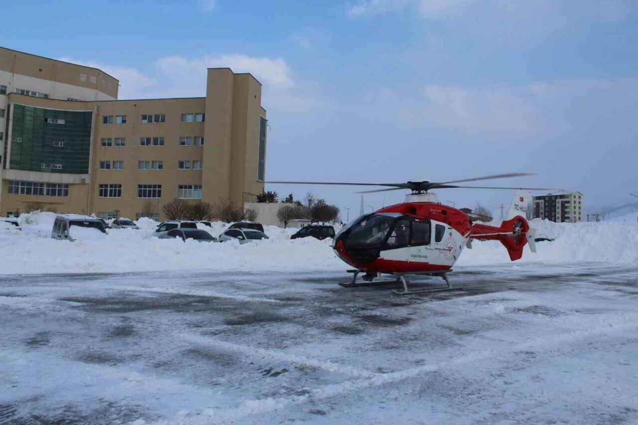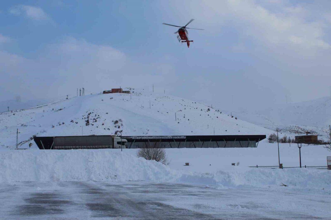 Bitlis’te kar nedeniyle yolu kapanan köydeki anne ve yeni doğan bebeği, helikopterle hastaneye ulaştırıldı.