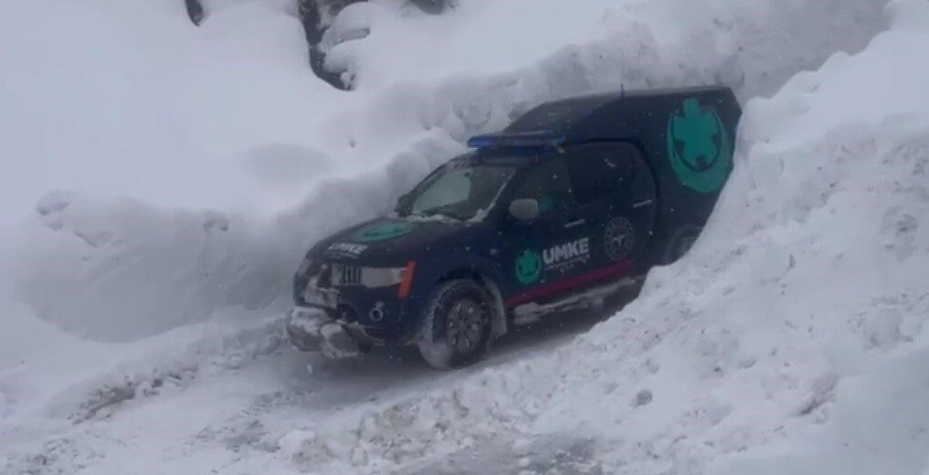 Yoğun kar ve ulaşımı zorlaştıran hava şartlarına rağmen UMKE ekipleri, güçlü koordinasyon ve büyük bir fedakârlıkla hastaya ulaşarak naklini güvenli bir şekilde gerçekleştirdi.