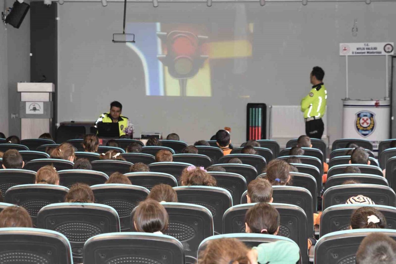 Bitlis’te, Emniyet Müdürlüğü ile Milli Eğitim Müdürlüğü işbirliğiyle düzenlenen trafik güvenliği eğitimleri, kent genelindeki okullarda sürdürülmekte.