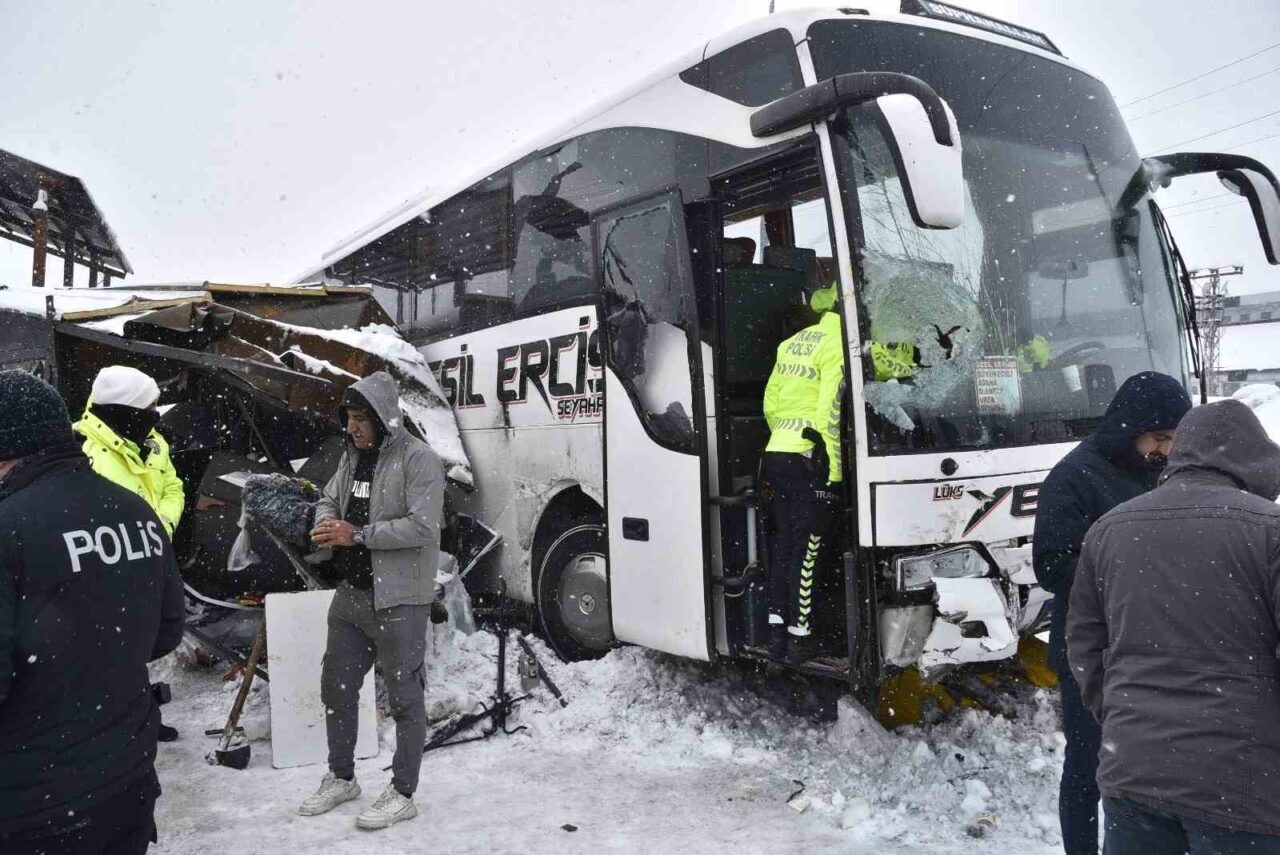 Diyarbakır’dan Bitlis istikametine gelen C.D. yönetimindeki Yeşil Erciş firmasına ait 46 AEG 334 plakalı yolcu otobüsü, Arıcılık mevkiinde kar yağışı nedeniyle kayarak sürücünün direksiyon hakimiyetini kaybetmesi sonucu kontrol noktasındaki polis kulübesine çarpmış; kulübedeki 4 polis memuru ise hafif yaralanmıştı. Diyarbakır istikametinden Van’a gelmekte olan otobüsün karıştığı kaza anı ise güvenlik kameraları tarafından saniye saniye kaydedildi.