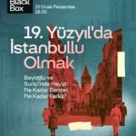 BlackBox’ın bu ay başlayan etkinlik serilerinden biri de “19. Yüzyılda İstanbullu Olmak”. Yazar ve çevirmen Saadet Özen’in anlatıcılığını üstlendiği etkinliklerin ilki, “Beyoğlu ve Suriçi’nde Kentsel Dönüşüm: Ne Kadar Benzer Ne kadar Farklı” başlığıyla 22 Ocak Perşembe 18.00’de gerçekleştirilecek.
