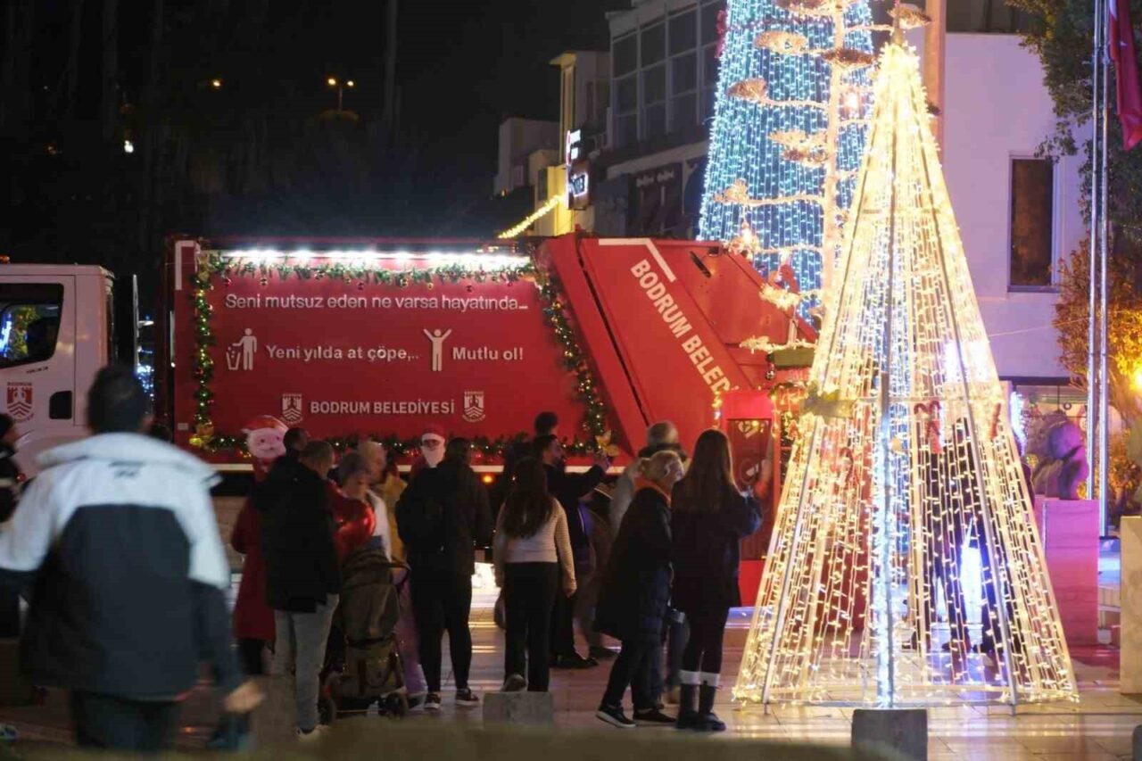 Işıklandırmaların yanında 2026 Yılbaşı Pazarı ile birlikte Bodrum Belediye Meydanı’ndan Barış (İskele) Meydanı’na kadar uzanan alan, 2025’ten 2026’ya geçilen anlarda yoğun kalabalığa sahne oldu. Yeni yıla özel olarak giydirilen çöp kamyonu da vatandaşların ilgisini çekti. Üzerinde “Seni mutsuz eden ne varsa hayatında Yeni yılda at çöpe mutlu ol” yazısıyla dikkat çeken çöp kamyonu ve Noel Baba kıyafeti giymiş personellerle birlikte meydanın her köşesinde fotoğraf çektiren binlerce vatandaş, bu anları sosyal medya hesaplarından paylaşarak yeni yılı Bodrum merkezinde karşıladı.