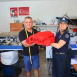 Muğla’nın Bodrum ilçesinde, uzun yıllardır dev Türk bayraklarının tamirini ücretsiz olarak üstlenen terzi Ali Akay, Bodrum Belediyesi tarafından özel bir teşekkür ve plaket ile onurlandırıldı.