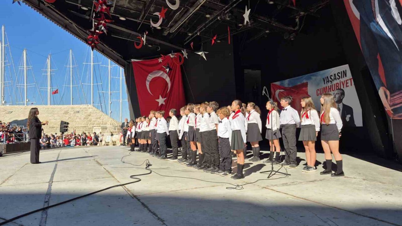 Kutlama programında, özel bir okul öğrencilerinin seslendirdiği “Cumhuriyet” ve “İzindeyiz” eserinin ardından, Bodrum Anadolu Lisesi’nin sergilediği “Modern Dans” ve “Bir Cumhuriyet Doğuyor” isimli gösteriler büyük beğeni topladı.