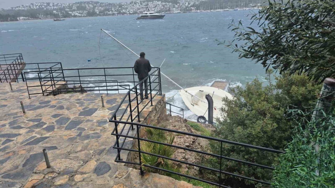 Muğla’nın Bodrum ilçesinde etkili olan fırtına nedeniyle bazı tekneler battı, kimileri de karaya sürüklendi.