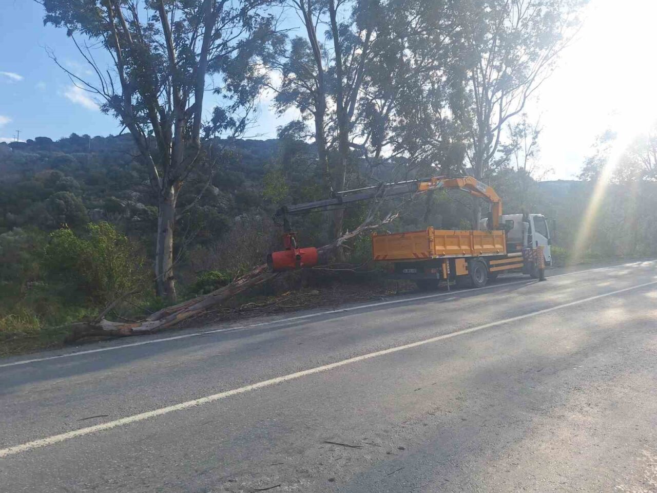 İlçede güneyli yönlerden fırtına sürüyor. Günlük yaşamı olumsuz etkileyen fırtına nedeniyle Pınarlıbelen Mahallesi Karanlık mevkiinde bir çam ağacı yola devrildi, yol trafiğe kapandı. İhbarın ardından bölgeye sevk edilen Bodrum Belediyesi Park ve Bahçeler Müdürlüğü ekipleri, devrilen ağacı yoldan kaldırdı. Fırtınanın etkisiyle Yalıkavak Yolu’nda da bir okaliptus ağacı devrildi. Yolun tek şeridini kapatan ağaç, Bodrum Belediyesi ekipleri tarafından temizlendi.