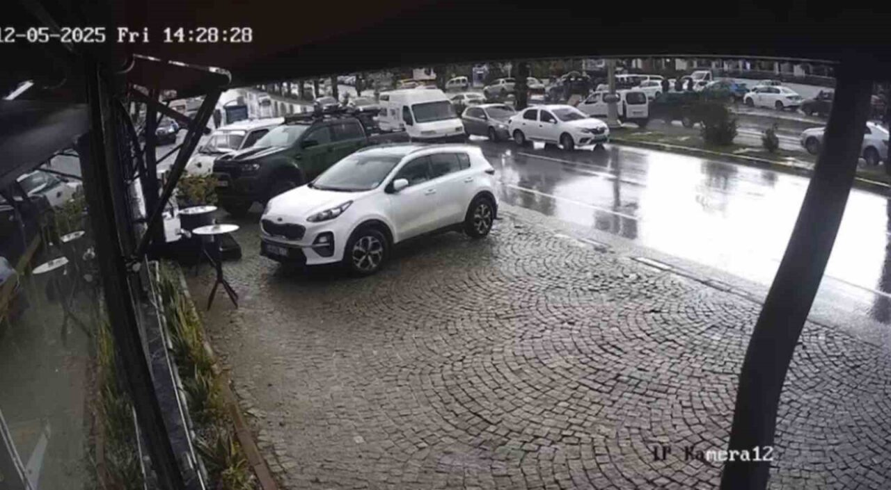 Alınan bilgilere göre, Konacık Atatürk Bulvarı üzerindeki unlu mamuller üretimi yapan işletmeye gelen sürücü, aracını işletmenin önüne park etti. Ancak el freni çekilmeyen araç, geri geri hareket ederek Atatürk Bulvarı’na doğru ilerlemeye başladı. O esnada, bulvarda Turgutreis istikametine giden bir diğer otomobilin sürücüsü, geri gelen aracı fark ederek hızını düşürdü. Fakat el freni çekilmeyen otomobil, başka bir araca hafif bir çarpma gerçekleşmesine neden oldu. Kazanın anları ise işletmenin güvenlik kameraları tarafından kaydedildi.