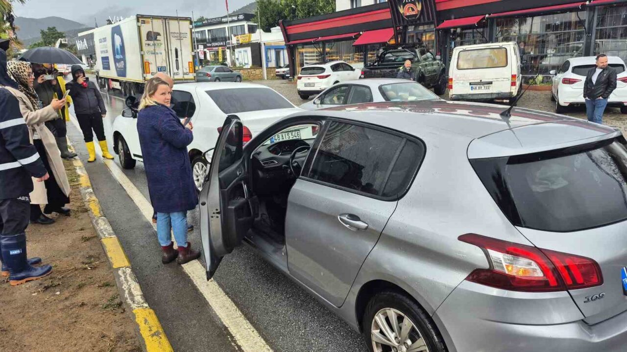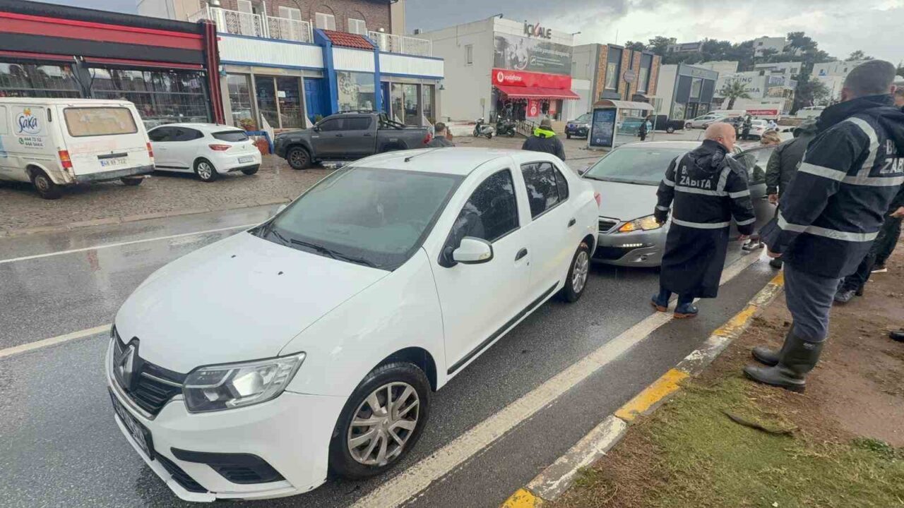 Muğla’nın Bodrum ilçesinde ilginç bir kaza yaşandı. El freni çekilmeyen bir otomobil, park halindeyken hareket ederek yolda ilerleyen başka bir araca çarptı.
