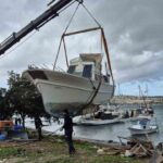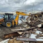 Bölgede ağır hasar almış sahipsiz tekneler ise iş makineleriyle parçalandı. Parçalanan bir teknenin altından çıkan Türk Bayrakları muhafaza altına alındı.