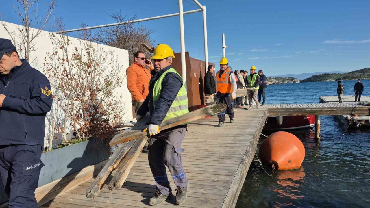 Edinilen bilgiye göre, Türkbükü Mahallesi’nde balıkçı barınağının yanına yaklaşık 10 yıl önce kaçak bir iskele inşa edilmiştir. Ardından 6 adet yüzer iskele ile kaçak liman oluşturulmuştur. Yaklaşık 100 teknenin bağlı olduğu limanda büyük tekne başına yıllık ortalama 500 bin TL ücret alındığı öğrenilmiştir. Şikayetler sonrasında 10 yıl sonra iskeleyle ilgili harekete geçilmiştir. Sabah saatlerinde Bodrum Kaymakamlığı koordinesinde Bodrum Belediyesi, Milli Emlak Müdürlüğü, Bodrum Bölge Liman Başkanlığı, Jandarma ve Sahil Güvenlik ekipleri bölgeye intikal etmiştir. Ekipler, iskelenin tahtalarını sökerek, iş makineleri yardımıyla ayaklarını da kaldırmıştır. Teknelerle çekilen yüzer iskelelerin yediemine götürüleceği belirtilmiştir.