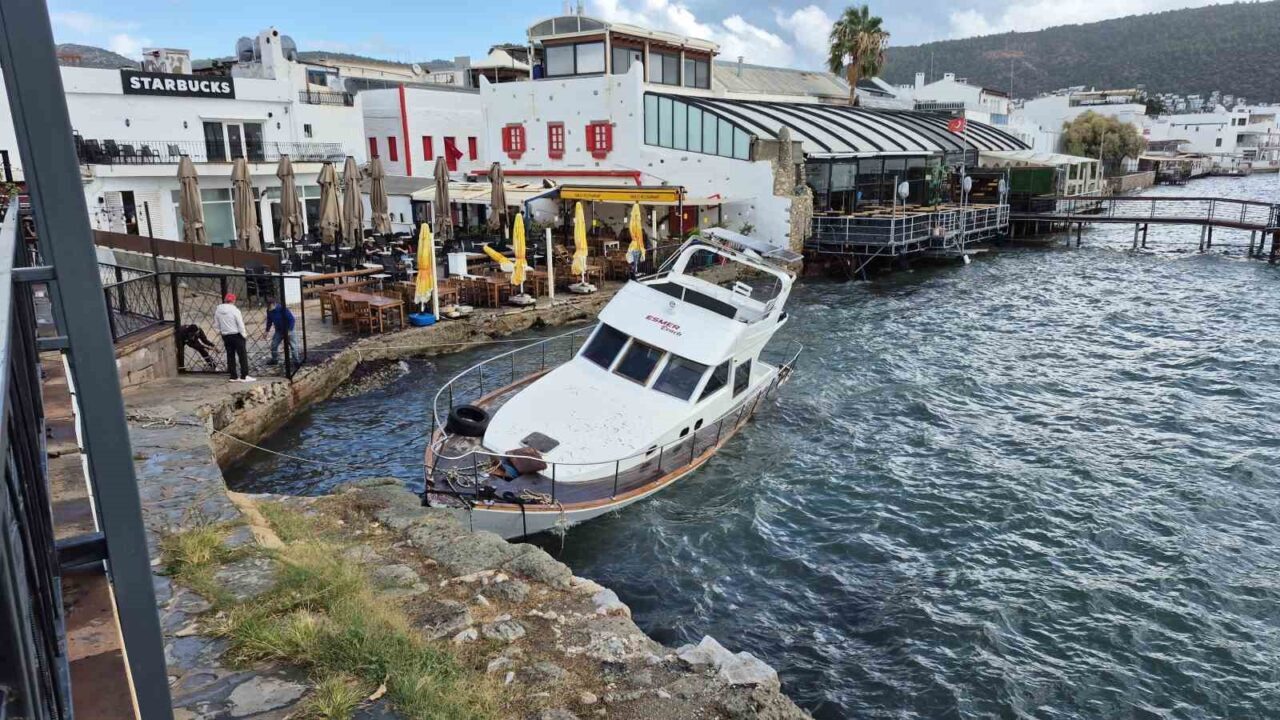 Muğla’nın Bodrum ilçesinde meydana gelen olumsuz hava koşulları, bir teknenin tonozdan kopmasına neden oldu.