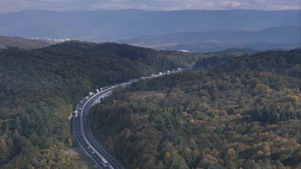 TEM OTOYOLU’NUN BOLU DAĞI TÜNELİ GEÇİŞİNDE 31 EKİM’E KADAR HAFTA İÇİ HER GÜN SAAT 10.00-15.00 ARASI YAPILAN ÇALIŞMALAR NEDENİYLE SÜRÜCÜLER YÖNLENDİRİLDİKLERİ D-100 KARA YOLUNDA YOĞUNLUK OLUŞTURUYOR. OLUŞAN YOĞUNLUK HAVADAN DRONLA GÖRÜNTÜLENDİ.