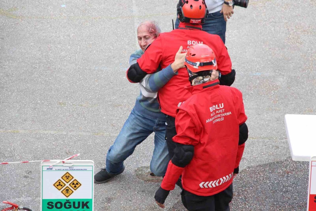 Bolu’da, AFAD İl Müdürlüğü tarafından organize edilen deprem tatbikatı gerçeğini aratmadı. Senaryo kapsamında 5.8 büyüklüğünde bir sarsıntı sırasında ekiplerin hızlı müdahalesi dikkat çekti.