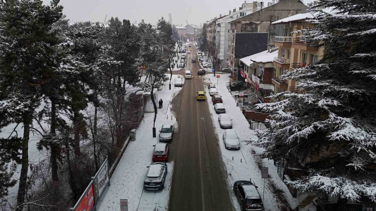 Bolu’da, soğuk havanın etkisiyle sabah saatlerinde başlayan kar yağışı aralıklarla devam ediyor. Yağışla birlikte şehir merkezi kısa sürede beyaza büründü. Kentin üzerinde oluşan beyaz örtü, kartpostallık manzaralar yarattı. Binaların çatılarından parklar ve yeşil alanlara kadar her yer karla kaplandı. Yağışın oluşturduğu görsel şölen, dron ile kaydedildi.