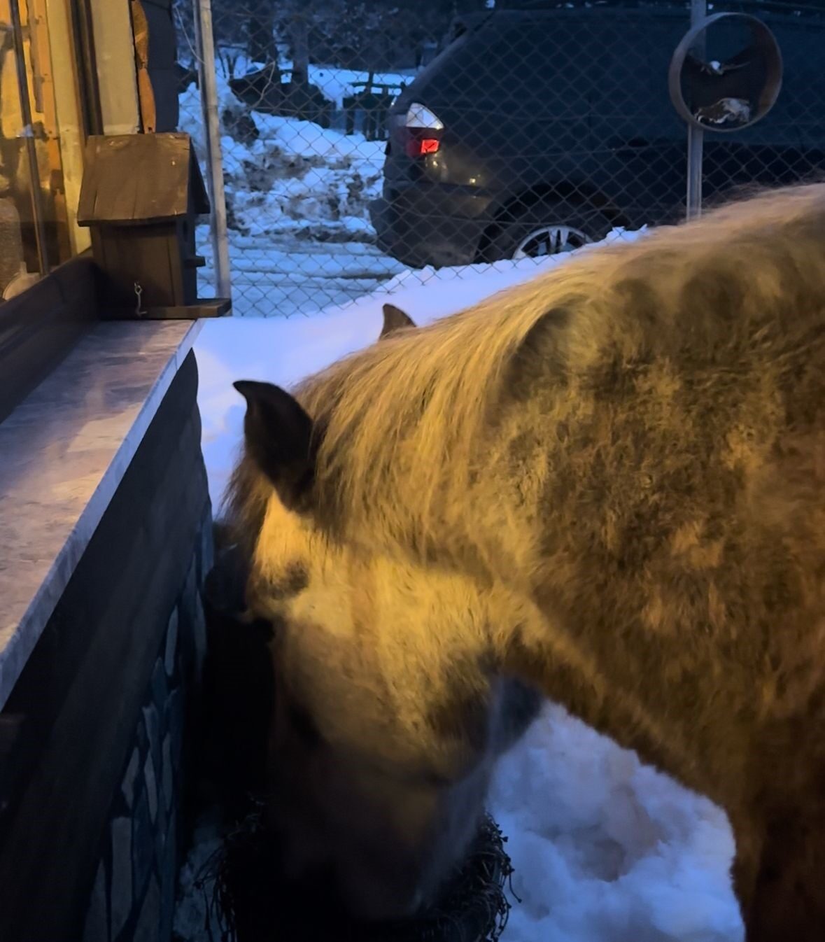 Bolu kent merkezine yaklaşık 15 kilometre uzaklıkta bulunan, doğal güzellikleriyle tanınan At Yaylası’nda çetin kış koşulları yaban hayatını olumsuz etkiliyor. Bölgedeki ‘Yılkı’ olarak bilinen yabani atlar, yoğun kar yağışının ardından doğada yiyecek bulmakta zorlanınca yerleşim alanlarına inmeye başladı. Yaylada evi bulunan doğa tutkunu ve içerik üreticisi Gökhan Bilen, sabah saatlerinde kapısının önünde bekleyen at sürüsüyle karşılaştı.