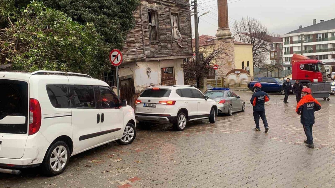 Bolu’da park halindeki bir otomobilin üzerine metruk haldeki 3 katlı bina çöktü