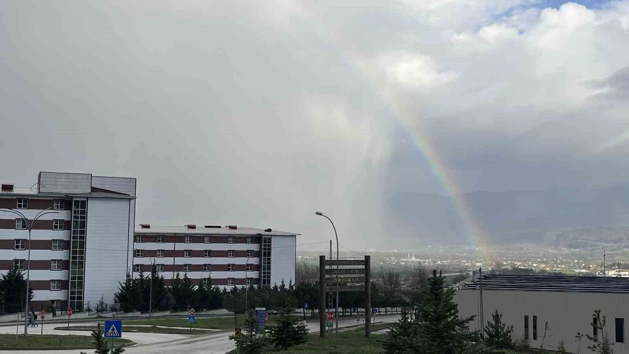 Bolu'da etkili olan sağanak yağışın ardından gökyüzünde oluşan gökkuşağı, kente görsel bir şölen sundu. Akşam saatlerinde başlayan ve yaklaşık bir saat süren yağmur, gökkuşağının ortaya çıkmasını sağladı. Şehrin birçok yerinden görülebilen bu renkli görüntü, vatandaşların ilgisini çekti ve birçok kişi o anları cep telefonlarıyla kaydetti. Kısa süreli etkisini gösteren gökkuşağı, izleyenlere unutulmaz anlar yaşattı. Ayrıca, yetkililer, Bolu'daki yağışların aralıklarla devam edeceğini duyurdu.