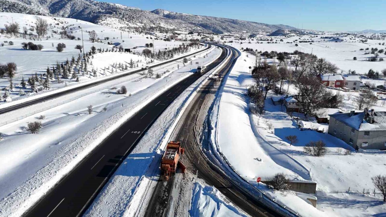 Karayolları ve trafik ekiplerinin yoğun çalışmaları neticesinde, yol sabah saat 06.00 itibarıyla kontrollü olarak trafiğe açıldı. Ekipler, güzergahta kar küreme ve tuzlama çalışmalarını sürdürdü. Kar küreme çalışmalarının devam ettiği bölgede, mahsur kalan araçlar görüntülendi. Dün gece yoğun kar yağışı sebebiyle yolda mahsur kalan araçlar havadan dronla görüntülendi.