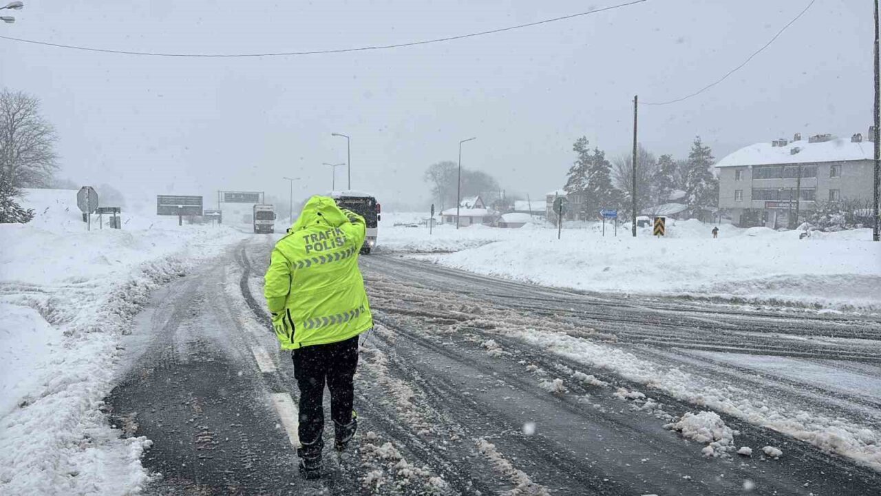 Bolu’da yoğun kar yağışı nedeniyle D-100 kara yoluna kısıtlama
