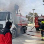 Bolu Belediyesine ait yol süpürme aracında çıkan yangın, itfaiyenin müdahalesiyle söndürüldü.