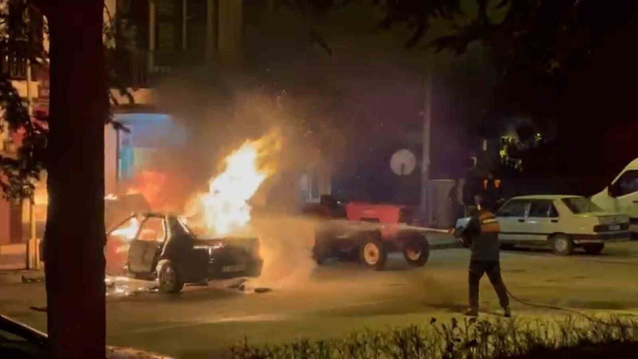 Bolu’nun Göynük ilçesinde park halindeki bir otomobil çıkan yangında kullanılamaz hale geldi.