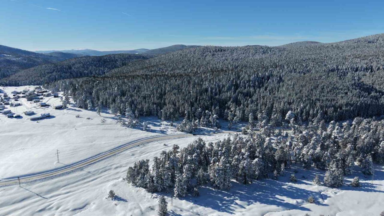 Bolu kent merkezine yaklaşık 20 kilometre mesafede yer alan bölge, kar yağışının ardından eşsiz bir güzelliğe dönüştü. Bolu’nun güneydoğusunda bulunan Sarıalan, bünyesinde barındırdığı 14 farklı köy yaylası ile geniş bir alana yayılmakta. Çam ormanları arasındaki konumu ve düz yapısıyla özellikle kampçılar ve doğa tutkunları için eşsiz bir rota sunan yayla, sessizliği ve temiz havasıyla dikkat çekiyor. Kış mevsiminin etkisini göstermesiyle beyaza bürünen yayla evleri ve çam ağaçları, kartpostallık görüntüler oluşturdu. Bölgede yaşanan kış güzelliği havadan dron ile görüntülendi.