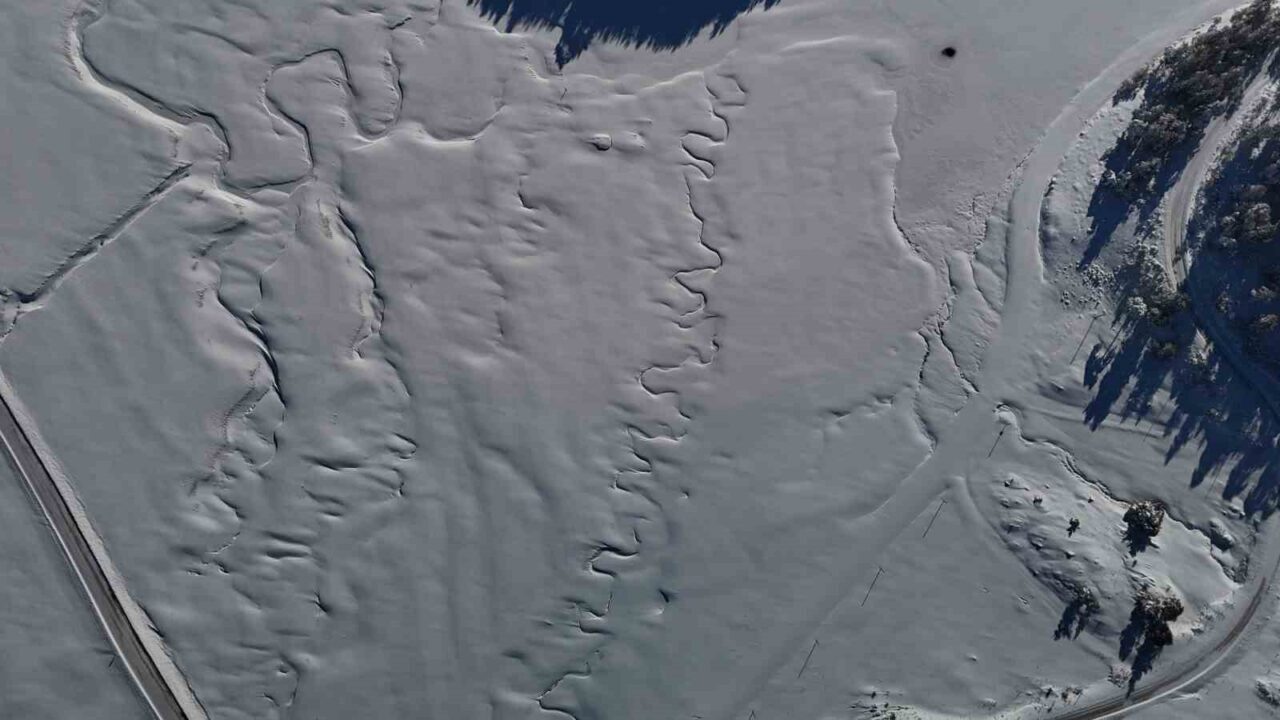 Yaylada oluşan kış manzarası havadan görüntülendi.