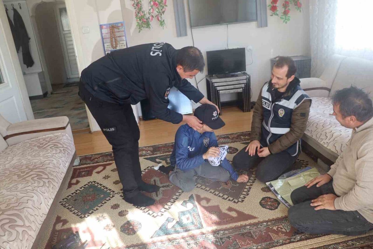 Serebral Palsi tanısı bulunan Ercan’ın ailesi, Bolvadin İlçe Emniyet Müdürlüğü’ne başvurarak, oğullarının bir gün polis aracıyla gezmek istediğini dile getirdi. Bunun üzerine, polis ekipleri Ercan’ı evinden alarak, ona özel formalar giydirdi ve birlikte devriye gezme keyfini yaşattılar.