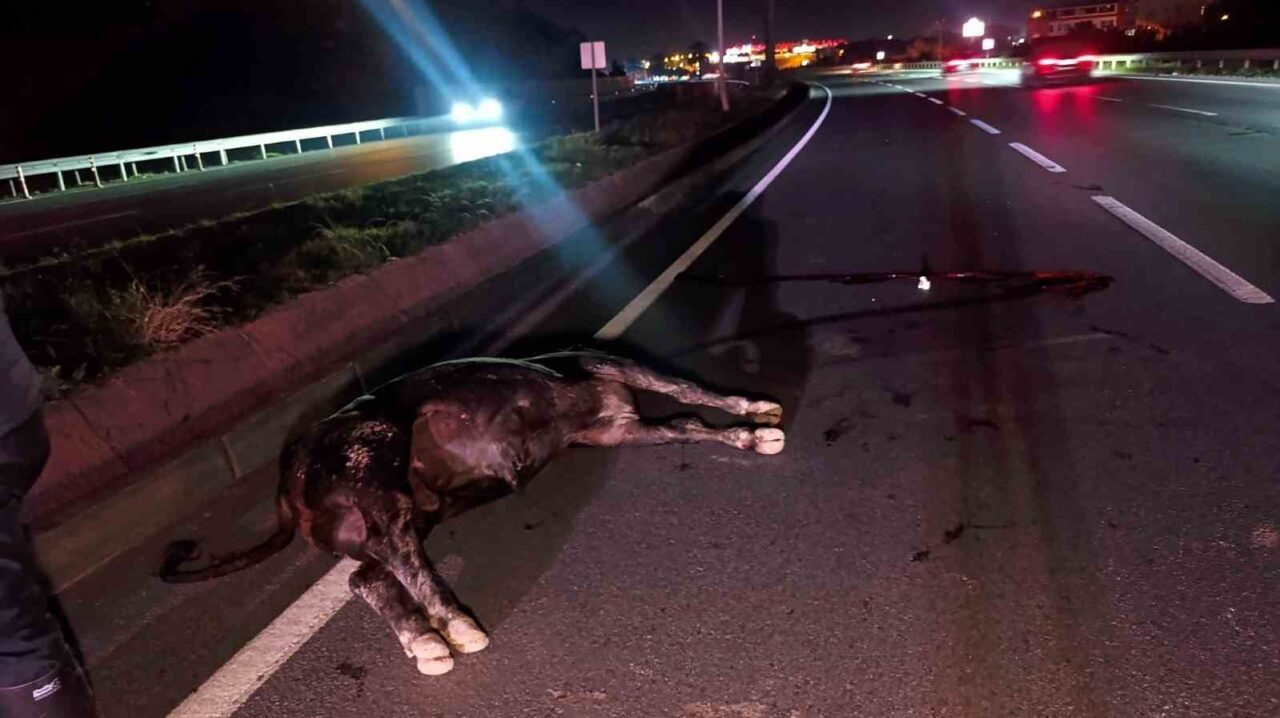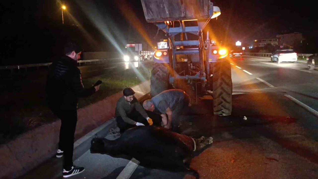 ANTALYA’NIN MANAVGAT İLÇESİNDE AĞILDAN KAÇAN VE D-400 KARAYOLUNDA TRAFİĞİ BİRBİRİNE KATAN İNEK, YOLDAN GEÇEN ARAÇLARIN ÇARPMASI SONUCU TELEF OLDU. AYDINLATMALARIN YANMAMASI NEDENİYLE ZİFİRİ KARANLIK OLAN YOLDA BAŞKA KAZALARIN YAŞANMAMASI İÇİN TRAFİK VE POLİS EKİPLERİ GENİŞ ÇAPLI ÖNLEM ALDI.