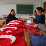 TUNCELİ’NİN HOZAT İLÇESİNDE HALK EĞİTİM MERKEZİ BÜNYESİNDE AÇILAN BAYRAK KURSUNA KATILAN 16 EV HANIMI, YAPAY ÇİÇEKLERDEN HAZIRLADIKLARI TÜRK BAYRAKLARIYLA HEM ÜRETİME KATILIYOR HEM DE AİLE BÜTÇELERİNE DESTEK OLUYOR.